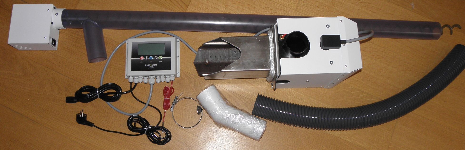Pellettipoltin 8-24 kW. Polttimen mukana tulee 1.5 m syöttökierukka sekä ohjausyksikkö graafisella näytöllä.